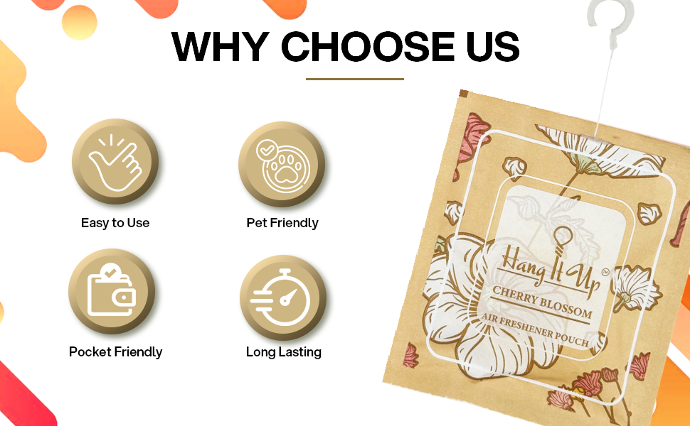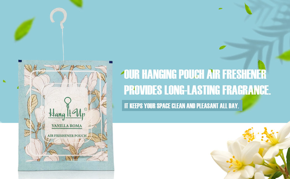 Easy to use: Just hang the pouch wherever you want instant freshness—perfect for cars, homes, wardrobes, and offices.