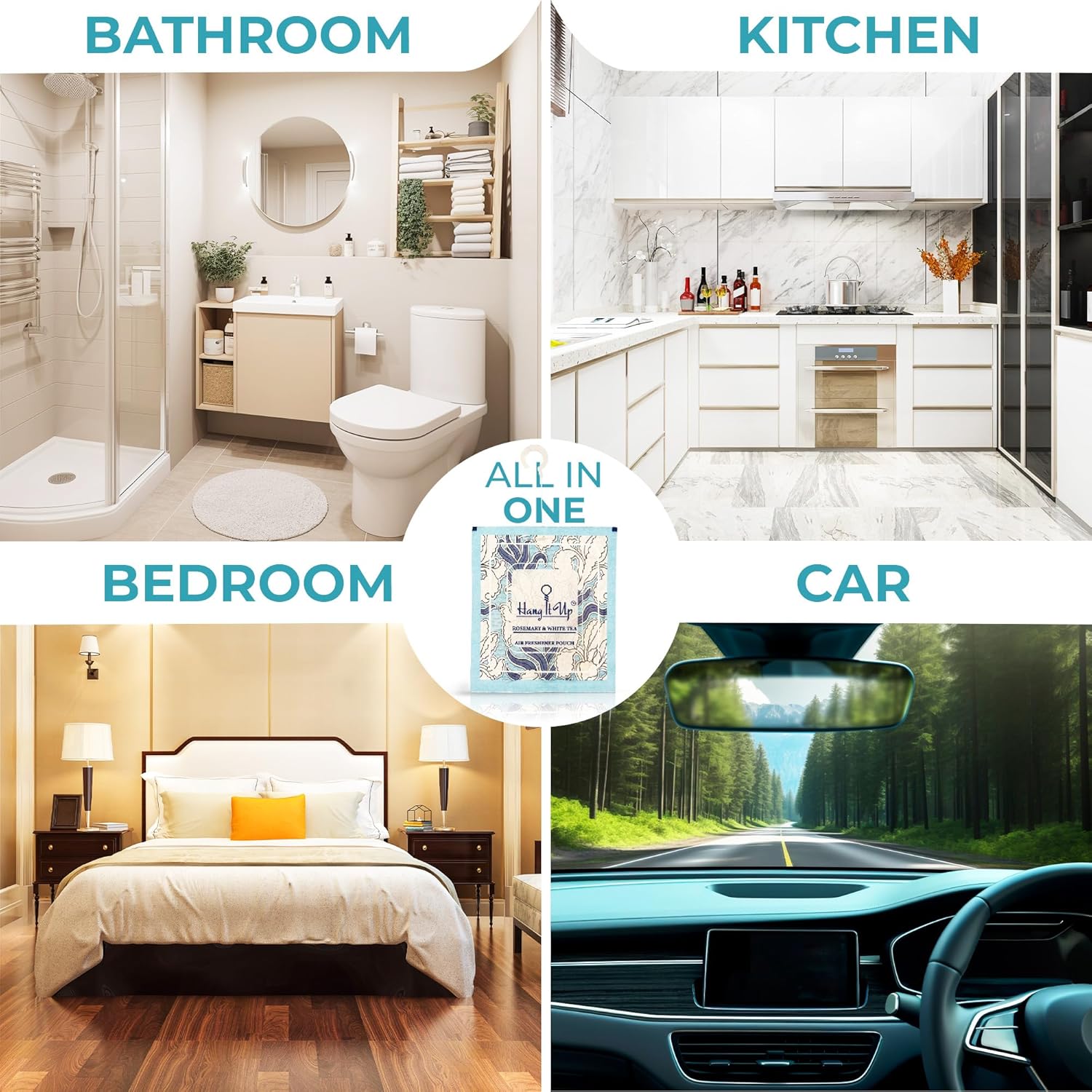 Air Freshener Pouches - Leamongrass, Cherry Blossom, Vanilla Roma & Rose marry & White Tea Combo of 4 | Long Lasting Fragrance